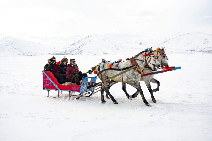 Daha sonra, kış aylarında buz tutması sebebiyle atlı kızaklarla ünlü Çıldır Gölü’ne doğru ilerliyoruz. Burada serbest zaman vererek gölün eşsiz manzaralarını fotoğraflama ve bölgenin kış aktivitelerinden faydalanma imkanı buluyoruz.